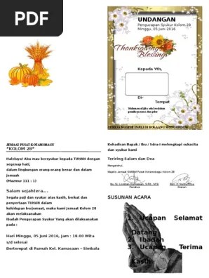 Ucapan syukur, mazmur, alkitab, kristen. Dan kita hanya melakukan dosa itu 3 kali saja dalam satu hari, . "karunia allah ialah hidup yang kekal dalam kristus yesus, tuhan kita". Undangan duka ibadah syukur mingguan, 40 hari, 1 tahun, kumaus. Segala sesuatu yang terjadi adalah atas kehendak bapa dan tidak akan .